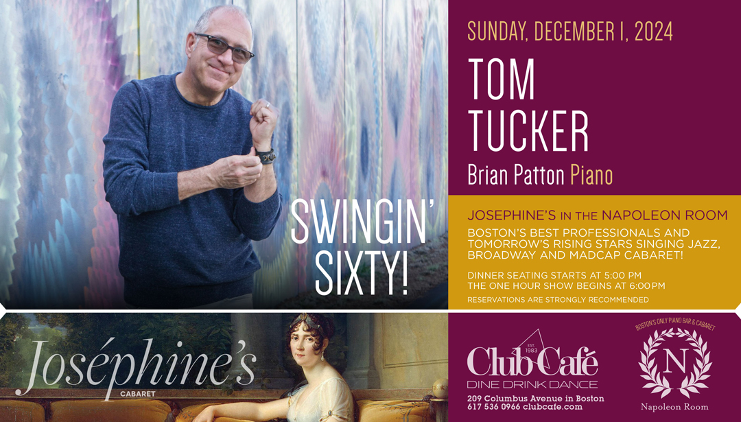 JOSEPHINE’S in the NAPOLEON ROOM – Boston’s best professionals and tomorrow’s rising stars singing JAZZ, BROADWAY & MADCAP CABARET! Dinner seating starts at 5:00 pm and the one hour show begins at 6:00 pm. RESERVATIONS strongly recommended.