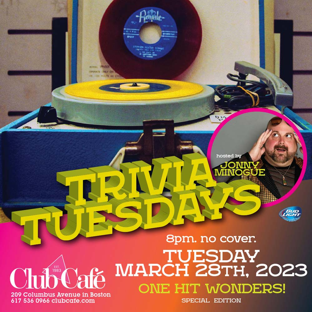 ONE HIT WONDERS SPECIAL EDITION TRIVIA Guaranteed a fun time with lots of prizes! Hosted by Jonny Minogue.