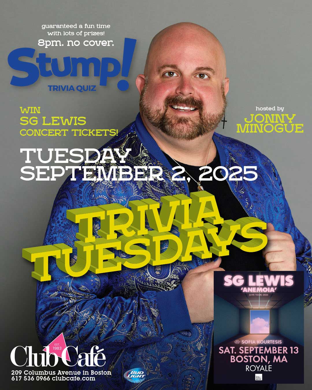 TRIVIA TUESDAY Win SG LEWIS Concert Tickets!. Guaranteed a fun time with lots of prizes! Hosted by Jonny Minogue.