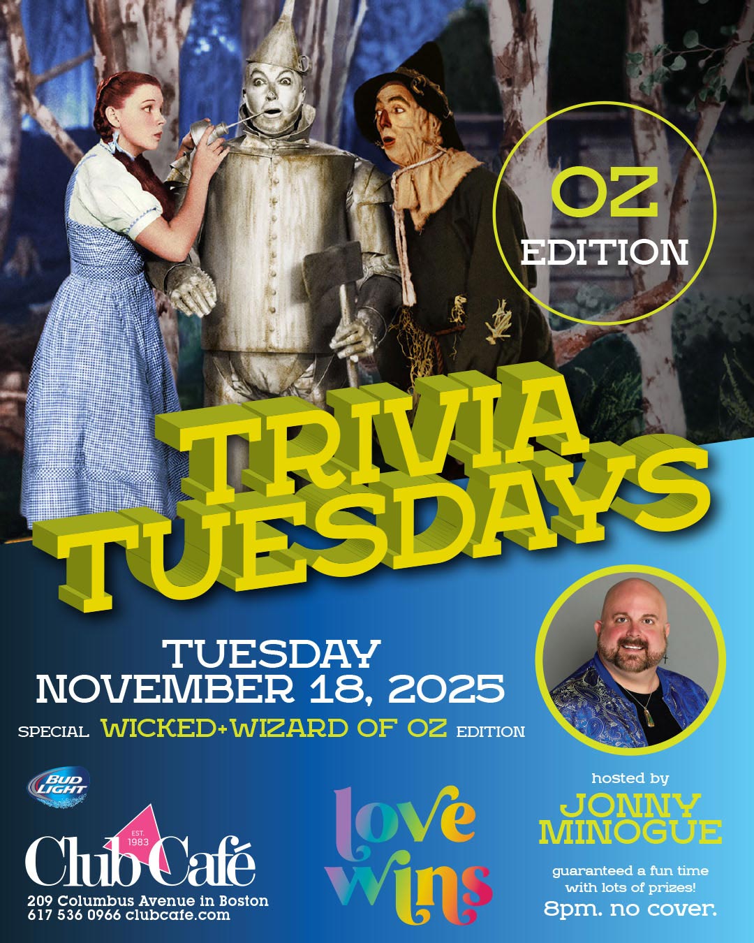 TRIVIA TUESDAY Special WICKED + WIZARD OF OZ edition. Guaranteed a fun time with lots of prizes! Hosted by Jonny Minogue.