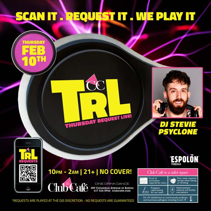 Music by DJ STEVIE PSYCLONE. Text in your requests for songs and for drag performances this week for Thursday Request Live! Our drag performers will be taking requests for numbers and performing periodically throughout the night!