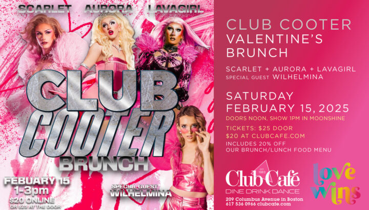 Your Valentine’s weekend just got a whole lot sexier! Join Boston’s freshest and fiercest drag girl group, Club Cooter, for their first brunch! Aurora, Scarlet Lane, and Lavagirl have been terrorizing audiences in Boston for the last year, and they can’t wait to bring it to you! Featuring the somersault queen Wilhelmina, this is sure to be the most chaotic and entertaining way to spend your Saturday!