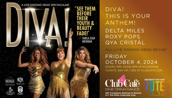 DIVA: THIS IS YOUR ANTHEM – A Show of Empowerment starring Delta Miles, Roxy Pops, and Qya Cristal Prepare to bring the house down as Club Café proudly presents “DIVA: This is your ANTHEM!” a sensational drag experience celebrating empowerment, authenticity, and self-expression, regardless of your gender color or creed. Crown jewels Delta Miles, Roxy Pops, and Qya Cristal return for their second season of DIVA in this show that promises to captivate you with its infectious energy, powerhouse vocals, and empowering message. “DIVA: This is your ANTHEM!” invites audiences to embark on a transformative journey of selfdiscovery, acceptance, and celebration through a dynamic mix of music, dance, three part harmonies, and storytelling. Wth hit songs like Bang Bang, Respect, Sorry Not Sorry and more, this show sends the message of celebrating your resilience, strength, and beauty while inspiring you to embrace your true self with pride.