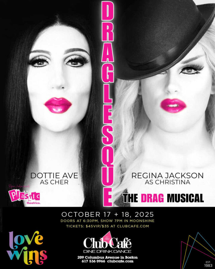 Plastic Theatrics is proud to present, DRAGLESQUE: THE DRAG MUSICAL; Starring Regina Jackson as Xtina as Ali, and Dottie Ave as Cher as Tess. Based off the hit movie “Burlesque“, this full re- imagined staged production takes you into the world of Ali, a small town drag queen with a big ass butt, yearning for the spot at Boston’s hottest draglesque club, ran by the mother of the house, Tess, and her burlesque babes. Come enjoy as Plastic Theatrics creates another beloved classic, and transforms it to be extra gay, and LIVE! So, what are you waiting for? Grab those tickets now, and show us how you WAGON WHEEL WATUSI!