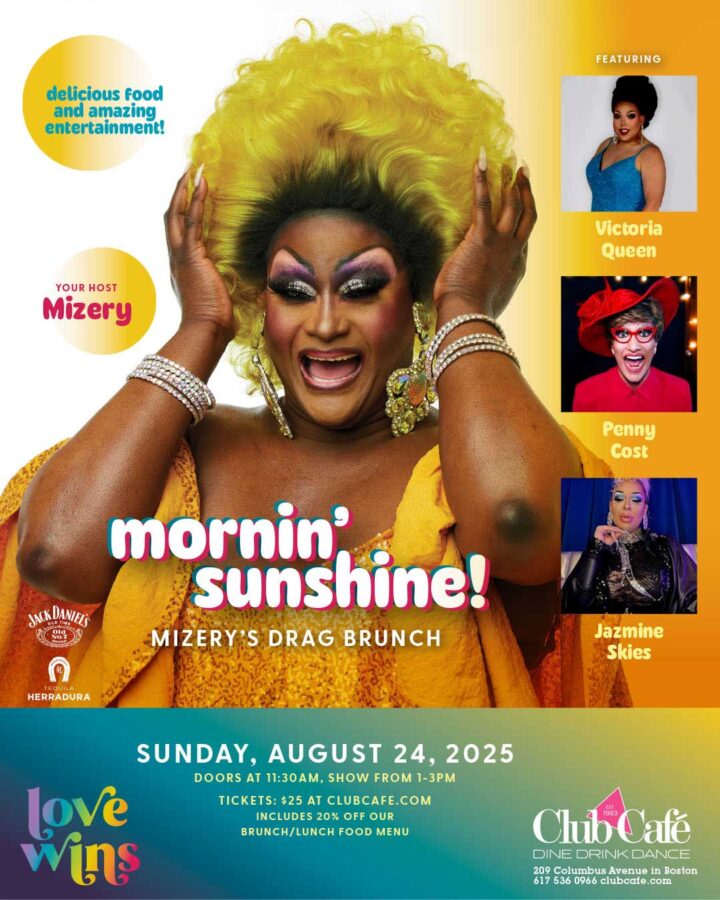 MIZERY’S DRAG BRUNCH Hosted by MIZERY! featuring special guests VICTORIA QUEEN, PENNY COST, and JAZMINE SKIES . $25 includes 20% off our Brunch / Lunch food menu. Doors at 11:30am, show 1-3pm. 21+