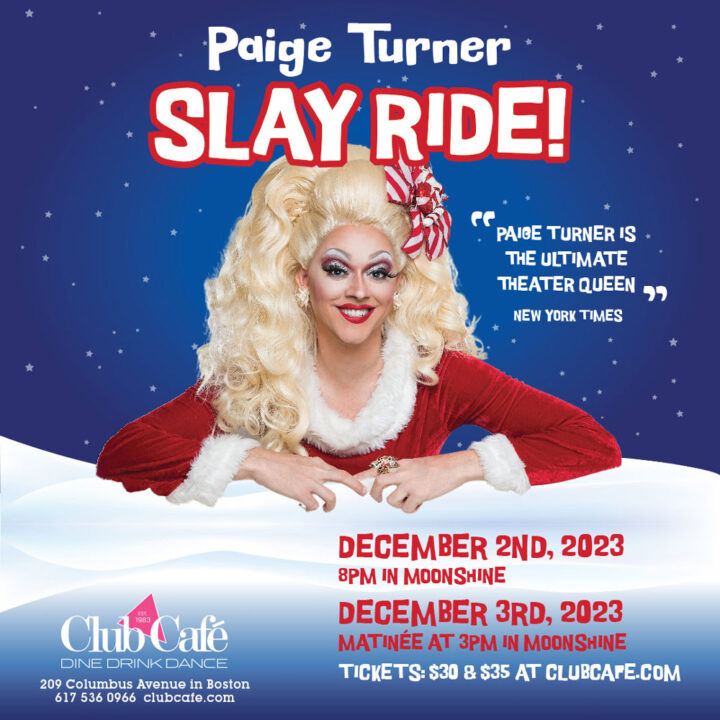 PAIGE TURNER returns by popular demand to CLUB CAFÉ in her all new holiday special “SLAY RIDE!” This oversized Barbie wants alot this Christmas and isn’t taking NO for an answer! Tis the season to be greedy, be a mistfit and get your stocking stuffed, while celebrating the true meaning of Christmas Paige Turner style. This holly jolly evening of mayhem and foolishness will definitely put you in the holiday spirit! The show features ALL LIVE sung songs from some of your favorite Christmas albums including Bing Crosby, Barbara Streisand and Mariah Carey. Original music as well over the top parodies of Feliz Navidad, I Want a Hippopotamus for Christmas and many more with videos and lots of presents just waiting to be unwrapped! *this show sold out last year, so plan ahead!