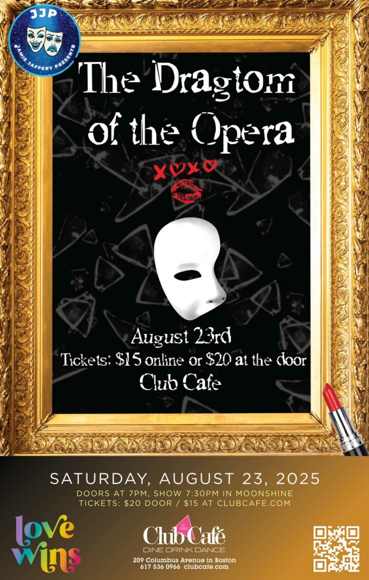 “Dragtom of the Opera” is a high-camp, high-glam drag parody of the classic musical Phantom of the Opera, dripping in sequins, sass, and scandal. When a mysterious masked drag queen haunts a 19th-century opera house, chaos ensues — from diva meltdowns and sapphic longing to chandelier meltdowns and Cher-inspired arias. It’s a tale of love, obsession, and fierce vocals told through wigs, high heels, and unapologetic faggotry. Come for the drama, stay for the chandelier’s hot takes — this is Phantom like you’ve never seen her before.
