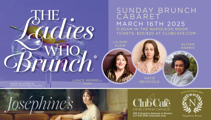 The Ladies Who Brunch at Club Café is Boston’s newest Sunday divertissement. Come and indulge yourself in a feast for your senses with renowned artists Liliane Klein, Aliyah Harris, and Katie Beckvold.