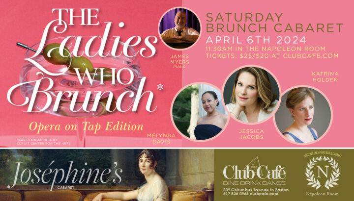 The Ladies Who Brunch at Club Café is Boston’s newest Sunday divertissement. Indulge yourself in a feast for your senses with Opera on Tap’s renowned artists Melynda Davis, Katrina Holden, Jessica Jacobs along with pianist James J. Meyers. We’re pairing charming theater classics, and delicious duets, and rare cabaret gems for an unforgettable brunch experience. “The Ladies Who Brunch”, where incredible food, gorgeous music and wonderful company come together seamlessly.