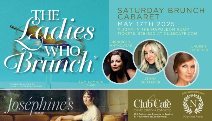 The Ladies Who Brunch at Club Café is Boston’s newest Sunday divertissement. Come and indulge yourself in a feast for your senses with renowned artists Jennifer Antkowiak, Jenna Schaefer and Lauren Schultes.