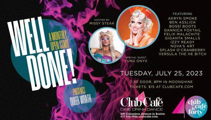 Welcome to WELL DONE! An Open Stage show! Join us as your host, Missy Steak, and this month’s special guest co-host, Yung Onyx, stage a QUEER WRATH THEMED drag show spectacular with our cast of 10; Aeryn Smoke, Ben Asslick, Bossí Boots, Dannica Foxtail, Felix Malachite, Giganta Smalls, Izzy Ready, Nova’s Art, Splash O’Cranberry, and Versula The He Bitch.
